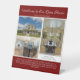 Showcase your listing on this modern red real estate company pedestal sign for your open house. Customize with your realty company name and add house photos and description of the property underneath. Great welcome sign for a realtor to place on the entry table.