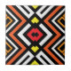 Moderne Keramik-Fliesen mit einem nahtlosen Muster aus geometrischen Formen in Rot, Gelb, Orange, Schwarz und Weiß.