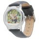 Kinder Edelstahluhr mit schwarzem Lederarmband