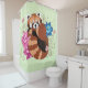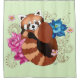 Ein niedlicher roter Panda, der ihren Schwanz hält. Lotus-Blume und Henna in grüner Umgebung liegen rund um den roten Panda. Alle gezeichnet im Tätowierstil.