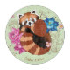 Ein niedlicher roter Panda, der ihren Schwanz hält. Lotus-Blume und Henna in grüner Umgebung liegen rund um den roten Panda. Alle gezeichnet im Tätowierstil.