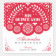 Feiern Sie Ihre Quinceañera mit diesem traditionellen Papel Picado-Design. Die Abdeckung wird mit Papierausschnitt aus Blume und anderen Details durchgeführt. Erhältlich in Rot, Bordeaux, Königblau, Smaragdgrün und Hot-Rosa. Koordinierung der Einladungen und Party.