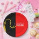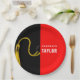 Creative Abschluss Glückwunschs Party Design mit klassischen schwarz-goldenen Kappe auf einem roten Hintergrund. Bearbeiten Sie Text, um den Namen des Grads hinzuzufügen.