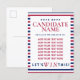 Choose these political campaign postcards with the red, white, and blue US American flag colors, a custom text field for your candidate's name, and a supplementary text fields to present your platform to your voters.