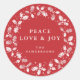 Red Peace Liebe + Joy Holly Wreath Runder Aufkleber