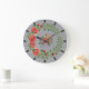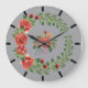 Rote Peonies warfen die Uhr auf grauem Hintergrund. Ständiges hübsches Design mit Knospen und grünen Blätter. Dank der Hungryjpeg für einige Elemente in der Gestaltung