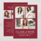 A simple and elegant boho-inspired graduation announcement featuring photo collages on both the front and back for a personalized touch. The front showcases three photos arranged in a clean collage format, framed by an elegant border with a deep red background and white text beneath. “Class of 2026,” the graduate's name, and school are displayed in understated, sophisticated fonts.