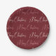 Red Pink Cream Script Pattern Frohe Weihnachten Pappteller