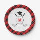 Monogrammed paper plates for your graduate's golf themed graduation party. These paper plates are printed with a red plaid border and features your graduate's initial against crossed golf clubs with a graduate cap above to symbolize the type of party.