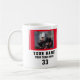 Tasse des Red Player Name Team Foto. Personalisieren Sie es mit Foto, Name, Teamname, Spielernummer und Jahr. Der Text ist ein trendiger, schwarzer Schriftart mit gelben Streifen. Ein perfektes Geschenk für Sportler, Teamkollegen oder Trainer.