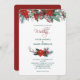 Hier finden Sie eine elegante, saisonale Hochzeitseinladung mit einer schönen roten Poinsettia und einer aquamarinen grünen Obergrenze. In der Mitte befindet sich ein kleineres rotes Poinsettia-Bouquet-Bild. Ihr eigener Text ist in der Mitte aquamarin und rot. Die Rückseite der Einladung ist solide passend rot. *Dank an ATArtDigital auf Etsy für die Grafik-Designs, die in dieser Einladung verwendet wurden.