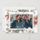 Happy Kwanzaa 2 Foto Weihnachtskarte. Die Vorderseite zeigt Ihr Foto in einem Rahmen, umgeben von roten Poinsettien, Heiligen, Beeren und Kiefernästen. Die Rückseite der Karte hat Platz für 1 Foto und Ihr Weihnachtsgrüßen.