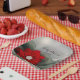 Red Poinsettia und Perlen auf der Grünen Winterhoc Pappteller