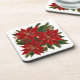 Untersetzer mit roten Poinsettien und Grünpflanzen.