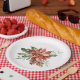 Ein Single mit Aquarellfarbe, umgeben von Kiefernzapfen, Heiligen und anderen Weihnachtsgrün. Matching Becher und Servietten verfügbar.