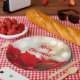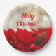 Red Poinsettia White Gold Bokeh Frohe Weihnachten Pappteller