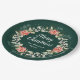 Dieser lustige und festliche Teller besticht durch einen Kranz mit roten Poinsettien und heilig auf dunkelgrünem Hintergrund. Der Text kombiniert handgeschriebene Skript- und Serif-Schriftart für ein elegantes und raffiniertes Aussehen. Das Hotel eignet sich ideal für Feiern, Brunch, Dinner Party, Open House und vieles mehr.