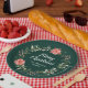 Dieser lustige und festliche Teller besticht durch einen Kranz mit roten Poinsettien und heilig auf dunkelgrünem Hintergrund. Der Text kombiniert handgeschriebene Skript- und Serif-Schriftart für ein elegantes und raffiniertes Aussehen. Das Hotel eignet sich ideal für Feiern, Brunch, Dinner Party, Open House und vieles mehr.