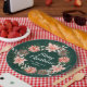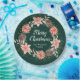 Dieser lustige und festliche Teller besticht durch einen Kranz mit roten Poinsettien und heilig auf dunkelgrünem Hintergrund. Der Text kombiniert handgeschriebene Skript- und Serif-Schriftart für ein elegantes und raffiniertes Aussehen. Das Hotel eignet sich ideal für Feiern, Brunch, Dinner Party, Open House und vieles mehr.
