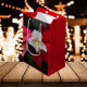 Saisonale Weihnachtsgeschenktasche mit rotem Foto, die das Bild einer hübschen, weißen Lady Slipper Orchid und festliche, rote Poinsettias, auch bekannt als die Weihnachtsfeier Blume. Ein schönes, blumengeschmücktes Design! Wählen Sie Ihren Geschenksackstil aus.