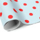 Ein Umhüllungspapier, das mit einem roten Polka-Punktmuster mit einem großen Abstand zwischen den Punkten auf einem blassblauen Hintergrund gebaut wurde. Passen Sie den hellblauen Hintergrund einfach an.