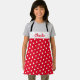Stilvolle Rot-Weiß-Schürze mit lustigem Polka Dot-Muster. Personalisieren Sie den Namen des Empfängers, der in der Schriftzypografie oben auf der Schürze erscheint.