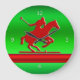 Red Polo Player auf dem Feld "Green Metallic Effec Große Wanduhr