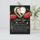 Elegante Begräbnisbotschaft "Danke", die mit einem Foto Ihres Lieben personalisiert werden kann. Diese Karten können an Freunde und Verwandte geschickt werden, die Ihnen während Ihrer Trauer Unterstützung, Liebe und Freundlichkeit gezeigt haben.