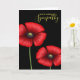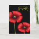 Eine Beileid-Karte mit roten Pupien auf schwarzem Hintergrund Mit tiefem Beileid. Entschuldigen Sie Ihren Verlust
