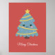Ein rotes Plakat für die Weihnachtsdekoration oder um ein Geschenk für Ihre Familie zu machen. Es kommt mit einem Kawaii Weihnachtsbaum und der bearbeitbaren Text Frohe Weihnachten.