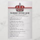 Prince Baby Dusche Spiele mit Babywortkrümel auf der einen Seite und Kinderzimmer Rhyme Quiz auf der anderen Seite. Dieser Flyer mit dem Baby Duschspiel in Rot, Schwarz und Silber macht Spaß! Sie können die Fragen und die Worte ändern. Gib sie deinen Gästen, die sie auffordern, nicht zu schauen, und starte dann die Uhr. Wenn die Zeit abgelaufen ist, lesen Sie die Antworten und die Person mit den meisten Rechten gewinnt einen Preis. Sie können sogar die Wörter und Rhymnen Ihrer Wahl hinzufügen! Hier sind die Antworten auf die Spiele: Word Scramble Answers: 1. Bassinet 2. Windeln 3. Flasche 4. Krippe 5. Autositz 6. Mobil 7. Shampoo 8. Handtuch 9. Baby Wipes 10. Schnuller 11. Schritt 12. Hintern Kinderzimmer Rhyme Quiz Antworten: 1. Drei 2. Abfahrt 3. Früh morgens 4. Lachte, Löffel 5. Blick auf Glas 6. Grün und Gelb