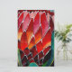 mit originellem Kunstdesign aus Aquarellmalerei von Sacha Grossel aus großer, roter Protea-Blume, naiv nach Südafrika und Australien. Helles und farbenfrohes Design mit rot, orange und grün.