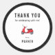 Red Retro Scooter Thema Vielen Dank Runder Aufkleber