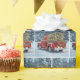 Red Retro Truck mit Weihnachtsbaum in Schneeflocke Geschenkpapier