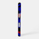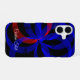 This iPhone 16 phone case features a blue color red accented revolving circular theme. The case can be personalized with custom text editing and also features iPhone model case change options. Makes an awesome gift idea.