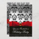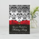RED RIBBON WHITE BLACK DAMASK HOLIDAY PARTY Ruby Einladung