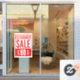 Große Räumlichkeiten für den Verkauf Fenster in rot und weiß für einen Einzelhandel oder jedes Geschäft. Moderne Typografie, um potenzielle Kunden zu gewinnen. Das Beispiel ist 40x40 Zoll, aber Sie können wählen, welche Größe Sie benötigen.