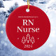 Erste Weihnachten als RN oder registrierte Krankenschwester roten Ornament für einen neuen Job in der Pflege. Elegante Porzellan Keramik Urlaubsornamente in Weiß mit schwarzer Schrift. Mit Weihnachtsbäumen und Sternen.