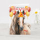 Rote und gelbe Ballons, die mit dem Party Hut und Rauschblume übereinstimmen, geben dieser Rot-Viertel-PferdeGeburtstagskarte eine festliche Touch.