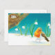 Red Robin Bird & Snowdrop Illustration Postkarte