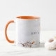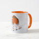 Es ist Winter, so schnuppern Sie mit einer warmen Tasse Tee, Kaffee oder warum nicht eine Tasse heiße Schokolade? Fütternd Vögel während der kalten Wintersaison. Ein niedlicher Robin, der in einen Garten kommt, Hinterhof für die Sonnenblumenkerne, die im Schnee liegen. Passen Sie einen Namen, schwarze Buchstaben, an und fügen Sie ihn hinzu.