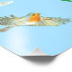 Robin Birds and Snowdrops, Galanthus nivalis, Muster auf blassblauem Hintergrund Foto Print. - Illustrierte Motive aus einem Bilderbuch "The Redbrust" (geschrieben und illustriert von Julia Doria). Designmotiv für Frühjahr. Geschenk für Vögel und Naturliebhaber.