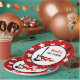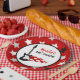 Rock Star Gitarren Teller in Rot, Grau und Schwarz schematisch dargestellt. Entworfen, um mit unseren Einladungen und anderen Dekorationen zu koordinieren. © Art by Jess Original Design.