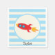 Red Rocket Space Ship; Light Blue Stripes Serviette