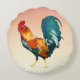 Dieses niedliche und fröhliche runde Kissen ist mit einem roten, gelben, blauen und grünen Hahn versehen. Spaß für das Chinesische Neujahr aber großartig für jede Zeit!