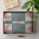 This farmhouse chic tissue paper features a distressed cafe style checkerboard of red roosters on a slate gray, black, and cream background. The red roosters alternate on the cream color with gray and black tiles, which look a bit like distressed tiles or fabric. This French country style paper would be a great accent for shopping or favor bags, as a focal point for decoupage projects, or a complement to gift wrapping projects.