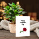 Grußkarte für Valentinstag mit abgeschiedener roter Rose auf weißem Hintergrund