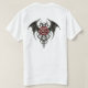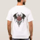 A central, vivid red rose in full bloom, framed by ornate black tribal scrollwork and large, outstretched bat-like wings. This symmetrical design combines soft floral textures with sharp geometric lines