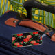 Red roses contrasted with a black background, colorful pattern.