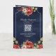 Red Roses Floral Frame Navy Blue QR Code Wedding Einladung